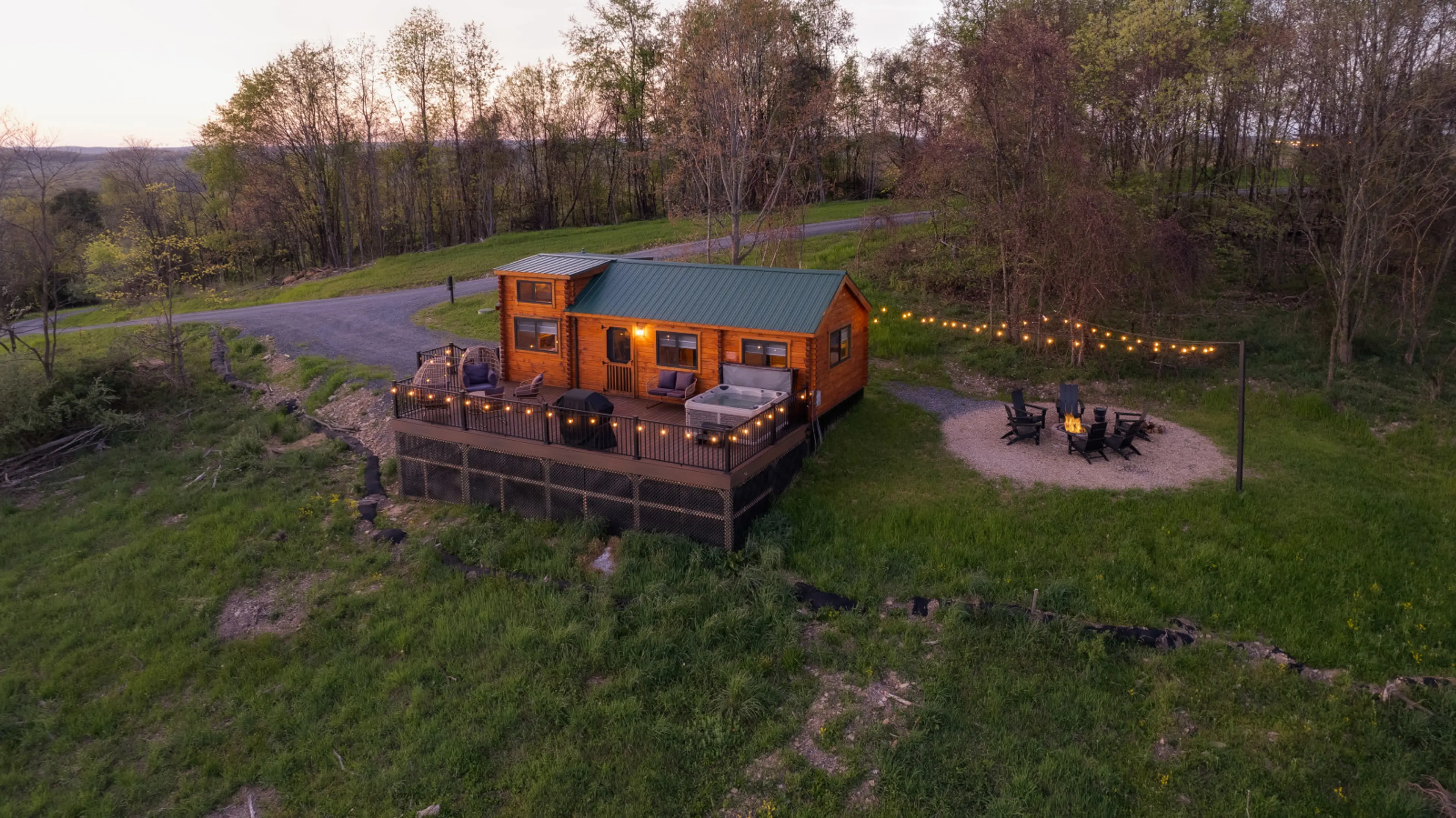 We came here to visit family and escape the heat and humidity in Central Florida and boy did we. The property looks like a tiny house, but suprisingly has three sleeping areas and a combination kitchen setting area all made of natural wood, looked like hewn knotty pine. Quality workmanship, we wouldn't be surprised if the house was built by the PA Dutch or Amish. The deck (see attached picture) was our favorite spot to lounge on in the evening, Saw turkeys, deer, rabbits, and squirrels and even heard some coyotes in the distance late one evening. Occassionally because of the lay of the land and the wind direction you could hear trucks on I-80, but NOT to the point where it was distracting or annoying.The property lived up to it's billing and we would be willing to stay here in the future. Very relaxing and comfortable.